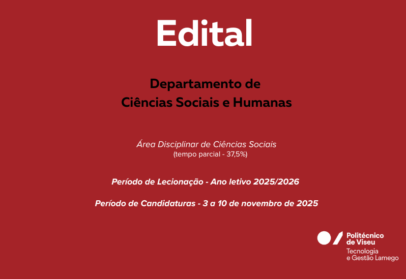 Contratação, de acordo com artigo 8º e artigo 12º do ECPDESP, nos termos e condições previstos no n.º 1 e 2 do Artigo 2º do Regulamento, de um Assistente convidado, a tempo parcial (37,5%) para a lecionação no CTeSP de Intervenção Social e Comunitária (Moimenta da Beira) das seguintes unidades curriculares: Problemas Sociais Contemporâneos, Sociologia Geral e Antropologia Sociocultural.